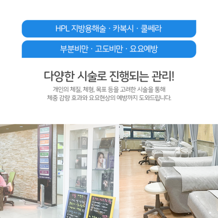 그러나 건강한 다이어트의 경우에는 노력을 한다고 해도 쉽사리 변화된 모습이 보이지 않기 때문에 재미를 붙이기가 힘들고 금방 포기를 하게 되는 일도 벌어질 수 있습니다. 이 때문에 살이 빠지는 걸 기다리기도 전에 좌절감부터 경험하는 일이 있을 것이라는 생각이 들었습니다. 무엇보다도 체중 감량이라는 것은 다양한 요소가 복합적으로 작용하여 방해를 하고는 하기 때문에 혼자만의 의지로 해내기가 더 어렵게 느껴질 수밖에 없을 것이라는 생각이 듭니다. 때로는 복부와 허벅지, 팔뚝처럼 특정한 곳에 원치 않게도 계속해 지방이 붙어 있기도 합니다. 이런 때에 목포 비만클리닉에서는 다양한 시술로 관리를 도와드리고 있습니다.