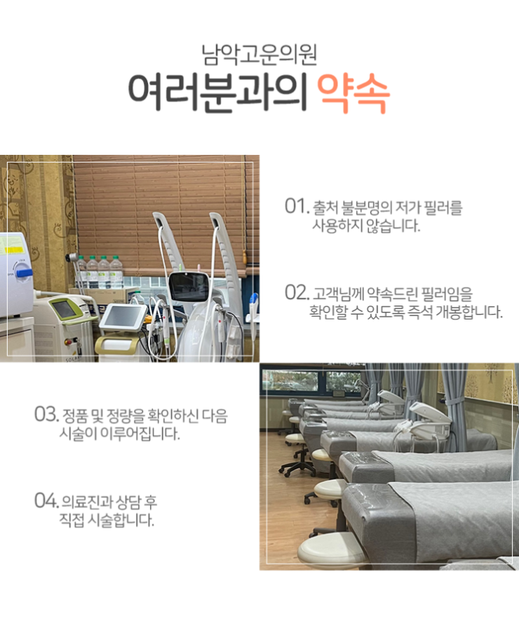 그외에도 진행이 되는 부위는 개인이 불만족을 느끼는 곳이 어디인지에 따라서 다양하다고 생각을 해 주시면 됩니다. 최근에는 얼굴의 볼륨감을 더해 주기 위한 방편으로 입술이나 애교살 시술에도 관심을 가지는 분들이 많이 계신데요. 목포 필러의 경우에는 어떤 곳에 시술을 할 것인지에 따라서 다른 방식으로 접근을 해 나가고 있습니다. 단순히 눈으로 보았을 때의 변화만이 아니라 눌러 보았을 때의 촉감 등을 함께 고려한 시술을 진행하면서 외적 변화를 이끌어낸다고 말씀을 전해드립니다. 또한 시술이 필요한 특정 부위만을 살피는 것이 아니라 그외의 다른 요소도 같이 확인해 나간다는 점을 강조드리고 싶습니다.