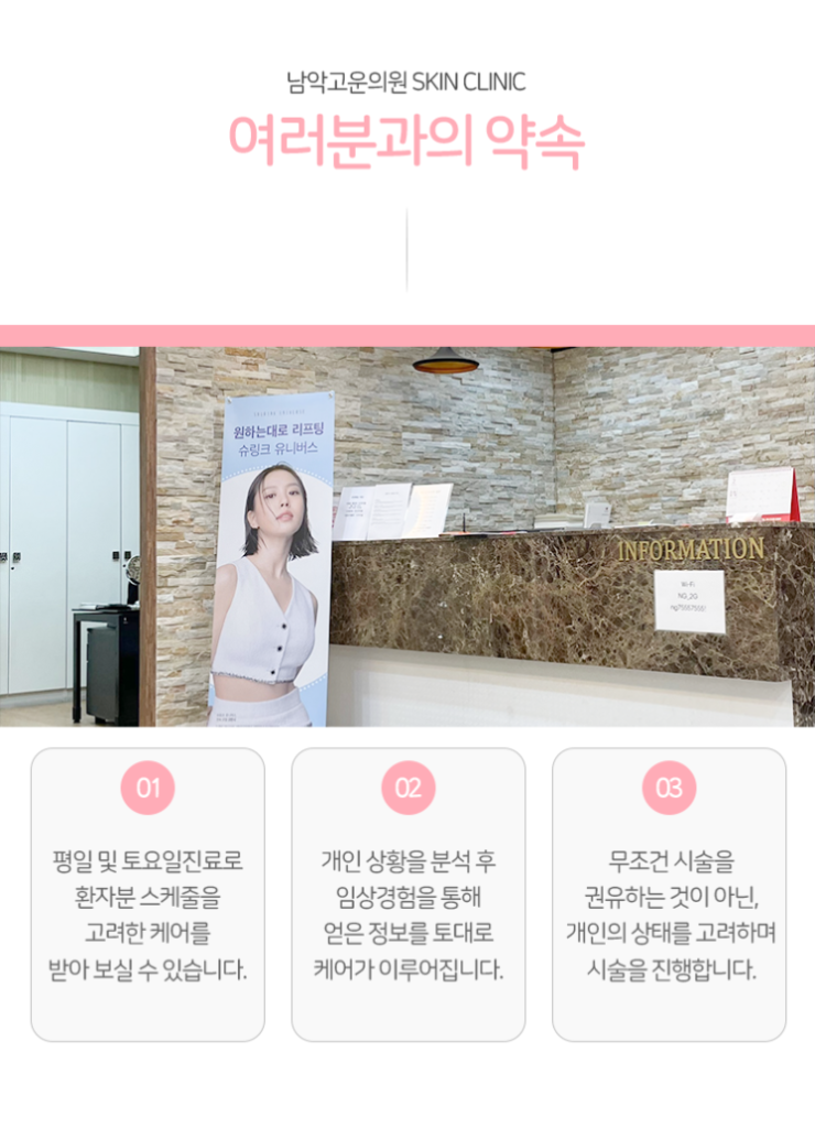 여드름 흉터와 관련한 내용을 주로 안내드렸습니다. 하지만 실제로는 남악 프락셀이 그보다도 다양한 영역에 영향을 준다는 말씀을 같이 전해드리고자 합니다. 기본적으로 피부의 재생력 증진을 도와줄 수 있는 시술이기 떄문에 안면부의 주름을 개선한다거나 모공을 축소해 주는 등의 역할을 해내기도 합니다. 이러한 문제들은 많은 분들께서 비단 여드름과 관련된 게 아닐지라도 흔히 경험을 하게 되는 고민거리 중 하나입니다. 그렇다보니 관리가 필요하다는 생각을 자주 하고는 하셨을 텐데요. 내원을 하셔서 시술을 진행해 보신다면 복합적으로 피부에 대한 관리 효과를 기대해 보실 수 있을 것이라고 말씀을 드립니다.