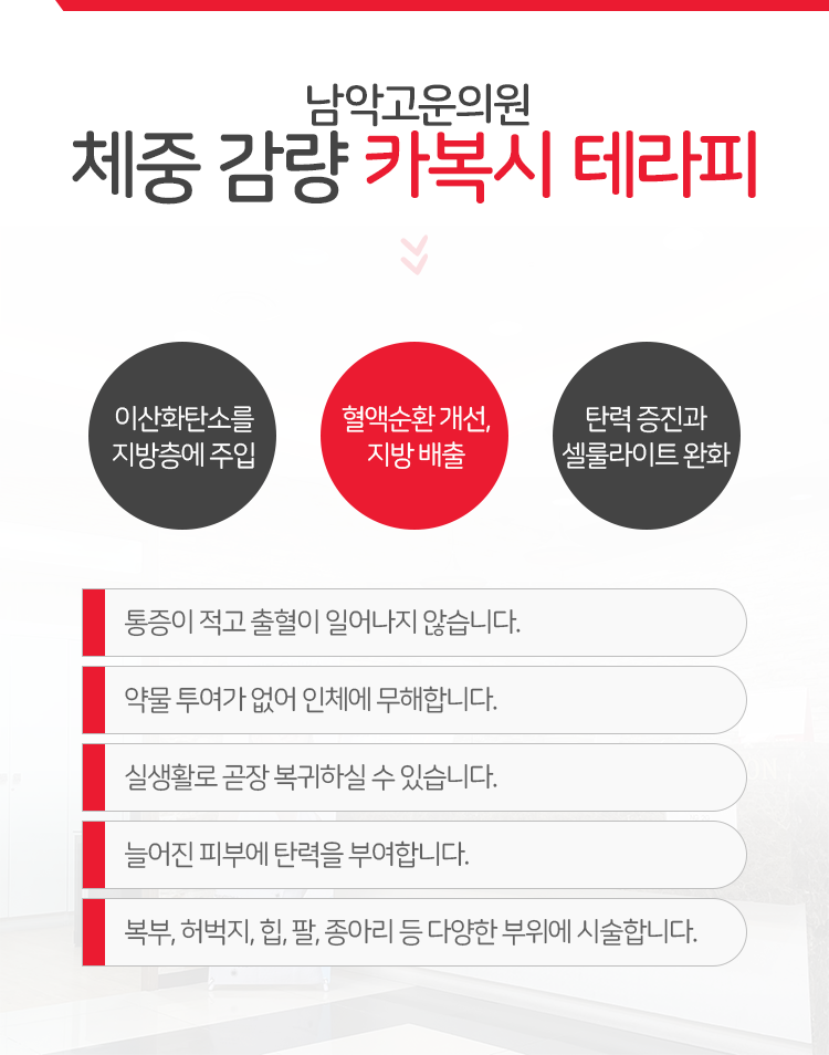 본원에서 진행하고 있는 시술의 경우에는 이러한 체형에 변화를 줄 수 있다는 것이 특징이라고 생각해 주시면 되겠습니다. 부분, 부분 문제가 있는 곳을 위주로 시술을 도와드리고 있습니다. 주로 진행이 되는 시술 중 하나인 카복시테라피는 체형에 변화를 주고 싶은 곳을 위주로 이산화탄소를 주입하여 체지방 분해를 도우면서 자연스럽게 체형 변화를 유도할 수 있다는 것이 특징입니다. 목포 비만클리닉에서는 카복시테라피 이외에도 HPL 지방용해술 등 다양한 시술을 진행해 드리고 있으며 허벅지, 복부, 팔뚝, 종아리, 엉덩이 등의 시술을 진행하시며 균형 잡힌 몸을 만들어 나가실 수 있습니다.