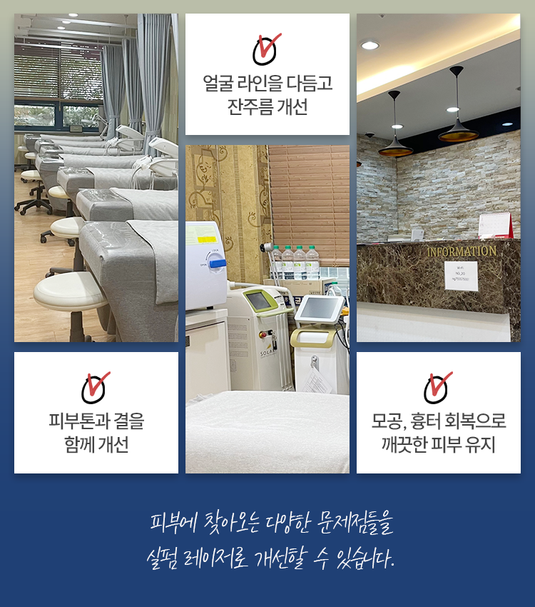 이외에도 모공의 타이트닝이나 리프팅 등에도 마찬가지로 도움이 되어 드리고 있습니다. 가지고 있는 문제가 개인마다 다양하기 때문에, 본원에서는 시술을 진행하기 전 개인의 피부 상태에 대해 먼저 파악을 하고 있고 그것을 기반으로 관리를 진행하는 것이라고 생각해 주시면 되겠습니다. 고민거리가 깊어지고 있는 상황이라면 시술을 통해 관리받아 보시면 되겠는데요. 소요되는 시간이 길지 않기 때문에 어렵지 않게, 일상생활을 유지하고 있으면서도 관리를 시행해 보실 수 있을 거라고 말씀드릴 수 있겠습니다.