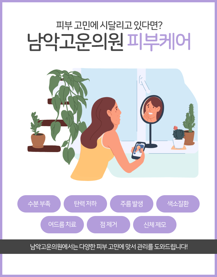 물론 홈케어 또한 등한시해서는 안 될 부분 중 하나이지만 어떠한 문제가 직접적으로 찾아와 피부 상태에 악영향을 가하고 있는 상황이라면, 단순한 관리만으로는 상태를 개선해 나가는 데 어려움이 존재할 수밖에 없기 때문인데요. 따라서 남악고운의원 목포 피부과와 같은 곳으로 내원을 하신 뒤 상태를 살피고 돌보는 쪽을 권유드릴 수 있겠습니다.