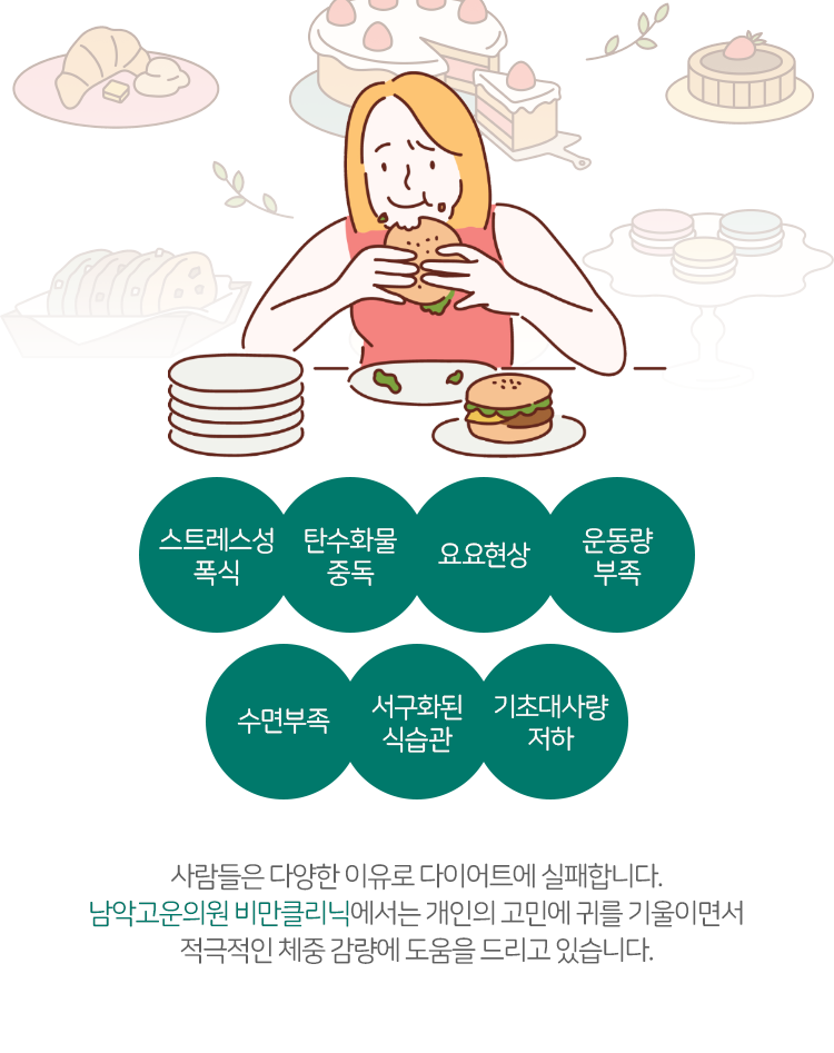 개인적인 노력으로도 살을 뺄 수 있다고 생각하실 것입니다. 물론 틀린 말은 아니나, 짧은 시간 동안 급격히 살을 빼려 하다 보면 오히려 문제 상황에 노출될 가능성이 높다고 남악고운의원에서는 말씀드리고 있습니다. 짧은 기간 내 살을 뺄 때 보통 선택하는 방식이 식사를 하지 않는 것입니다. 음식을 먹지 않고 참고 참기를 반복하는 건데요. 이를 통해 살이 빠지는 것은 사실이지만 건강 상태가 같이 악화된다는 문제점을 떠안게 됩니다.