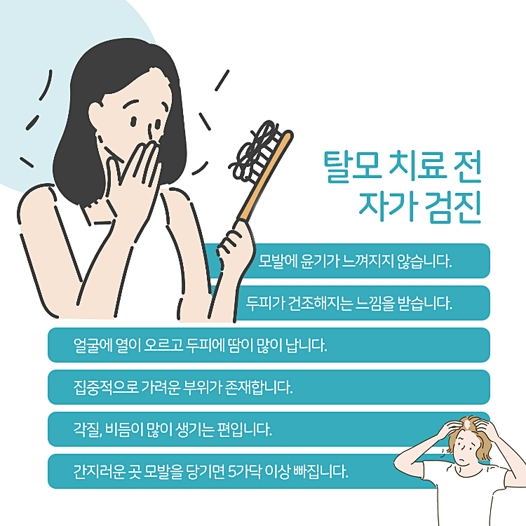 아픔을 꾹 참고 견뎌낼 수 있는 질환이 있는가 하면 탈모는 외형적인 변화를 유도하는 질환이기 때문에 숨기거나 감출 수 없습니다. 물론 가발이나 모자를 이용하는 것이 가능하다고는 하지만 요즘처럼 날이 더울 때에는 이마저도 여의치 않다는 생각이 들 것입니다.