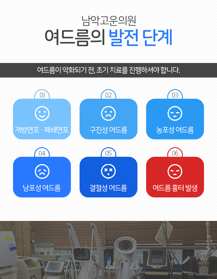 여드름은 사춘기 무렵 누구나 겪는 일인 데다가 그 이후에도 지속적으로 찾아오고는 합니다. 그렇다보니 심각한 문제라는 생각을 하지 못하는 분들도 계셨을 것이라는 걸 알 수 있었습니다. 그러나 실제로는 여드름은 치료가 이루어지지 않을 시 피부의 건강을 악화시키는 원인으로 작용할 수밖에 없는 문제라고 강조하여 말씀을 드리고 싶습니다. 피부 상태를 건강하고 안정적으로 유지하기 위해서라면 목포 여드름 시술은 초기에 진행을 해 주시길 바라겠습니다. 내원하시면 현재의 피부 상태를 고려한 접근을 통해 안정적인 치료, 회복 효과를 기대해 보실 수 있겠습니다. 감사합니다.