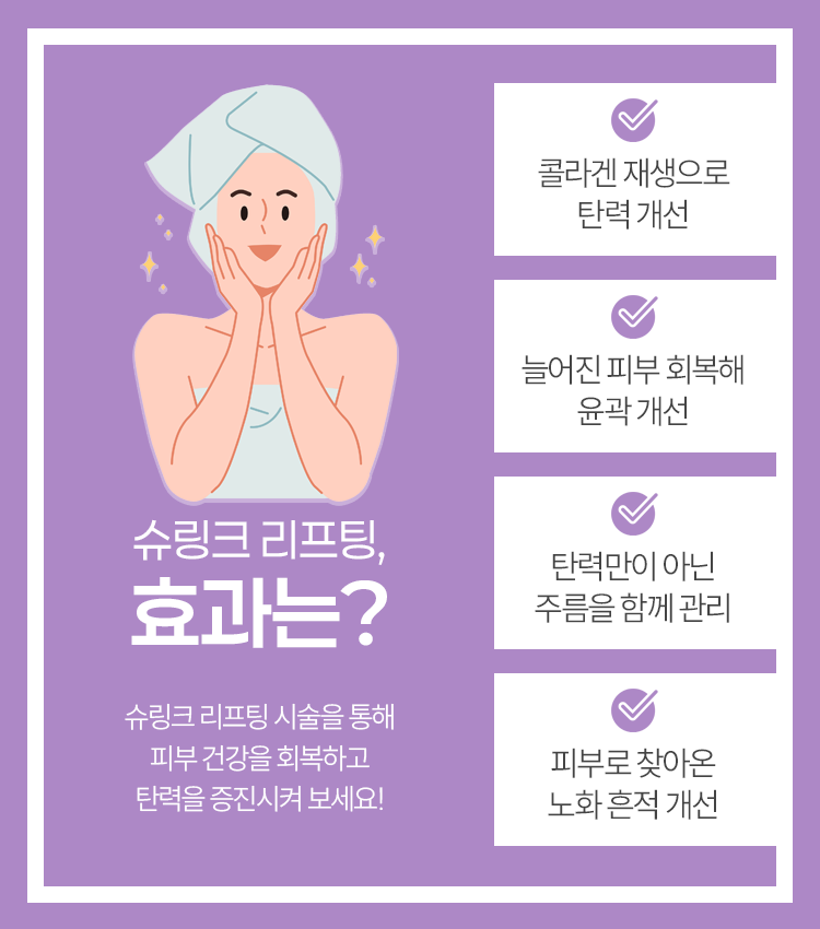 그렇다보니 자연스럽게 피부가 처지고, 주름이 생겨나는 문제 상황이 벌어지는 것이라고 생각해 주시면 되겠습니다. 보통은 서서히 진행되기 때문에 초기에는 느끼지 못하다가 30대, 40대가 될수록 서서히 문제 상황이 심화될 수 있다고 말씀을 드렸습니다. 남악 슈링크 시술을 진행해 보신다면 이렇게 생겨난 노화의 흔적을 안정화시키는 데 도움받으실 수 있겠습니다.