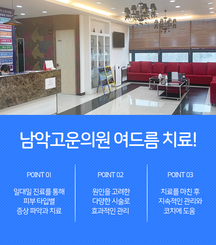 여드름이 반복적으로 생겨나고 있는 상황이라면 여드름 상태가 개선된 이후에도 붉거나 갈색 색소침착, 패인 흉터가 생겨날 수 있기 때문에 적극적으로 상태를 확인하면서 치료까지 노력을 기울여 주셔야만 합니다. 꾸준한 관리에 들어가지 않는다면 여드름은 점점 심각해지고 이전에 없던 곳까지 퍼지거나 재발을 하는 식으로 문제 상태를 악화시킬 우려가 있습니다. 이런 일이 생겨나지 않게 하려면 초기에 내원을 진행하는 걸 중요하게 생각해 주어야만 합니다.
