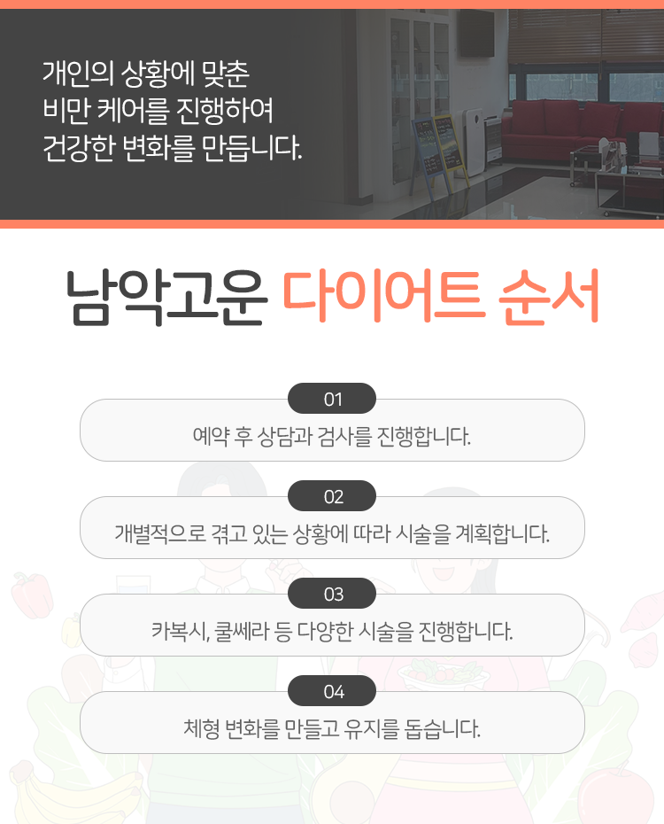 특히 어떤 분들은 살이 찌면서 피부 표면이 울퉁불퉁해졌다고 말할 수 있는데 해당 시술은 이들을 매끄럽게 정리하는 데에 도움이 되고 지방이 빠져나간 뒤의 탄력 개선에도 신경 쓰고 있기 때문에 체형을 건강하게 다잡는 역할을 기대해 보실 수 있을 것이라고 안내를 드렸습니다. 목포 비만클리닉 카복시 테라피 시술은 시술 시간이 길지 않기 때문에 안정적으로 진행을 해 보실 수 있을 것이라고 말씀을 드리오니 바쁜 일상 속에서도 체중 관리를 진행하지 않을 수만은 없어 걱정을 하고 계셨던 분들이라면 이제라도 내원을 하셔서 관리를 위한 노력까지 함께 기울여 보시기를 바라도록 하겠습니다.