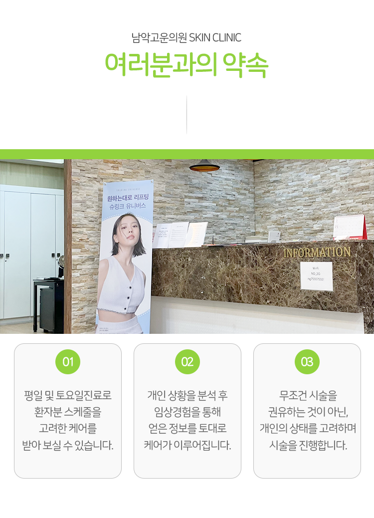 시술 후 며칠간은 피부가 붉어지거나 미세한 딱지가 생길 수 있지만 시간이 지나면서 자연스럽게 회복되는 과정을 거치게 됩니다. 남악 프락셀의 경우 시술 후 관리도 중요한데요. 자외선 차단과 보습에 더욱 신경 써야 하고 피부가 회복되는 동안 자극적인 세안제는 사용을 피하는 등의 노력이 중요하다고 설명드렸습니다.